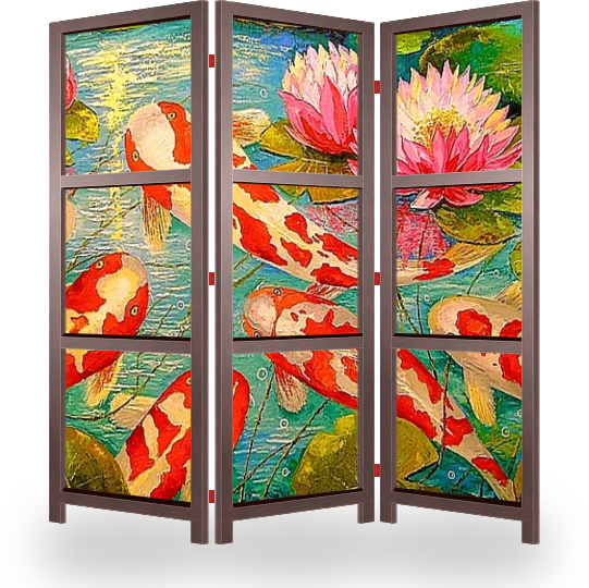 Описание ширмы Рыбки Кои,картина маслом холст . Для инетерьера или на подарок. Кои,пруд,пейзаж,природа,абстракция,живопись,для интерьера,декор на стену,принт,постер,рыбы,яркий арт,радуга