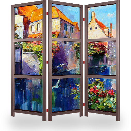 Ширма эконом отлично подойдет для временного размещения, рекламы, для отгораживания объектов интерьера и его дополнения. Лицевая сторона с изображением, обратная сторона открытый каркас