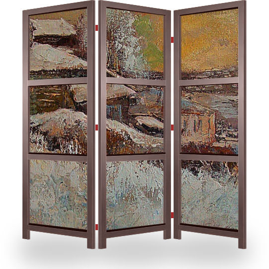 Описание ширмы дом, живопись, россия, дорога, зимний лес, пейзаж, февраль, январь, снег, село, плес, зима