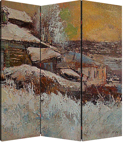 Описание ширмы дом, живопись, россия, дорога, зимний лес, пейзаж, февраль, январь, снег, село, плес, зима