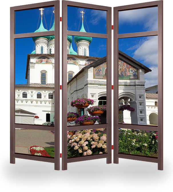 Ширма эконом отлично подойдет для временного размещения, рекламы, для отгораживания объектов интерьера и его дополнения. Лицевая сторона с изображением, обратная сторона открытый каркас
