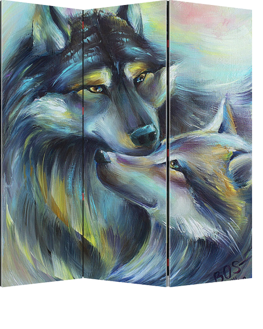 Описание ширмы "Пара волков" картина маслом, оригинал 35х40, автор Богданова Ольга, 2018 г.