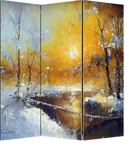 Описание ширмы Работа выполнена на льняном холсте (производство Вышний Волочёк) на подрамнике, корпусный, акриловый подмалевок +масло (Италия/Голландия), работа выполнена в оригинальной технике (Know how) присущей только Игорю Медведеву.