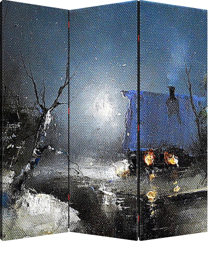 Описание ширмы Работа выполнена на льняном холсте (производство Вышний Волочёк) на подрамнике, корпусный, акриловый подмалевок +масло (Италия/Голландия), работа выполнена в оригинальной технике (Know how) присущей только Игорю Медведеву.