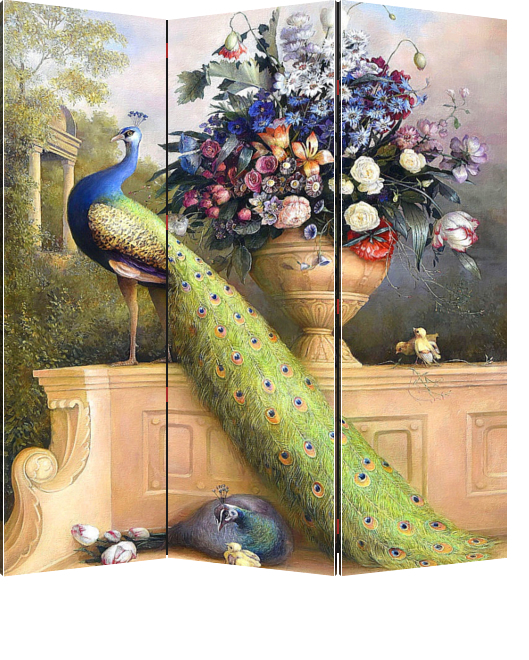 Описание ширмы Картина с павлином художника Елены Бартеневой из Санкт-Петербурга. Размер оригинала - 75 х 100 см.