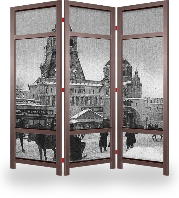 Ширма эконом отлично подойдет для временного размещения, рекламы, для отгораживания объектов интерьера и его дополнения. Лицевая сторона с изображением, обратная сторона открытый каркас