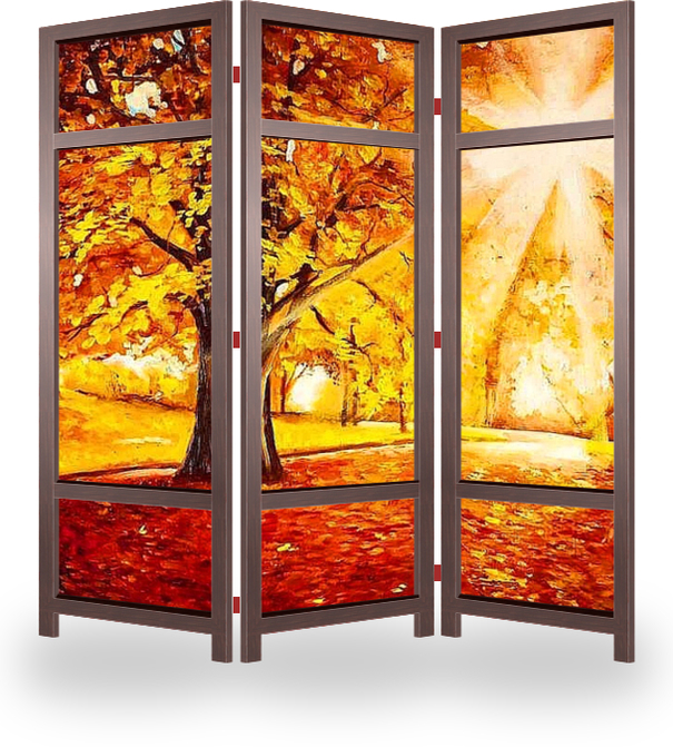 Описание ширмы яркая картина. Солнце в сверкающем красками лесу касается каждого листочка