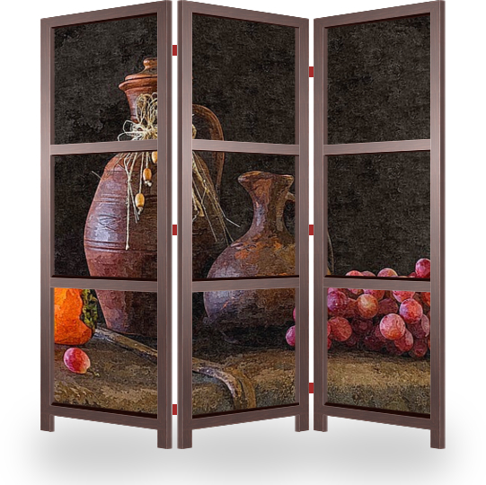 Описание ширмы Натюрморт в классическом стиле ,стилизованный под живопись .Такой постер может украсить любое помещение вашего дома, квартиры, офиса, отеля, ресторана, кафе.