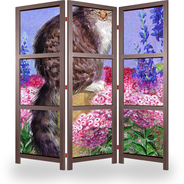 Ширма "кот в саду"