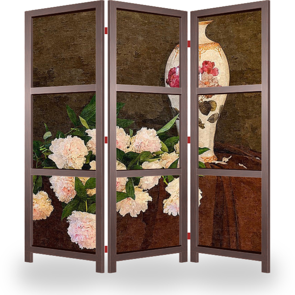 Описание ширмы Натюрморт с роскошным букетом розовых пионов может стать прекрасным украшением любого помещения вашего дома, квартиры, офиса, отеля.