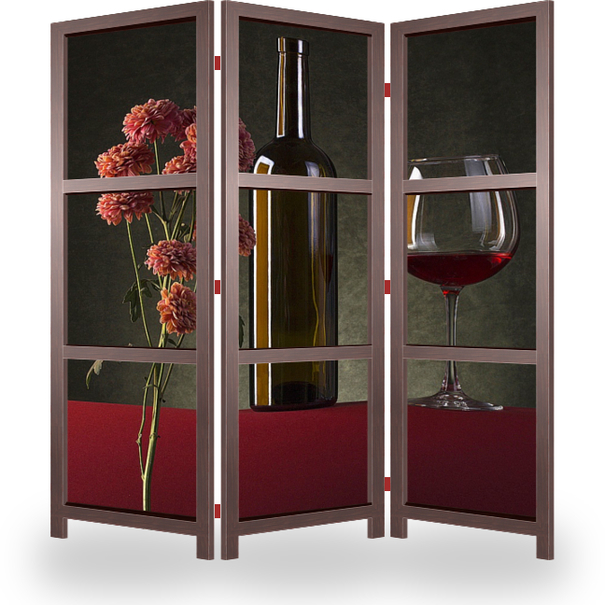 Описание ширмы "Натюрморт с вином и цветами" - это фотоэтюд с несколькими предметами. Простая композиция, где главную роль играет свет, цвет, формы и пространственное расположение объектов съёмки.