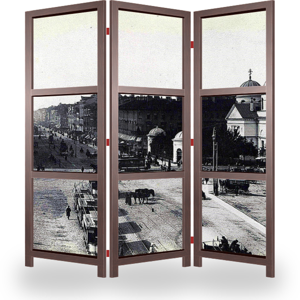 Ширма эконом отлично подойдет для временного размещения, рекламы, для отгораживания объектов интерьера и его дополнения. Лицевая сторона с изображением, обратная сторона открытый каркас