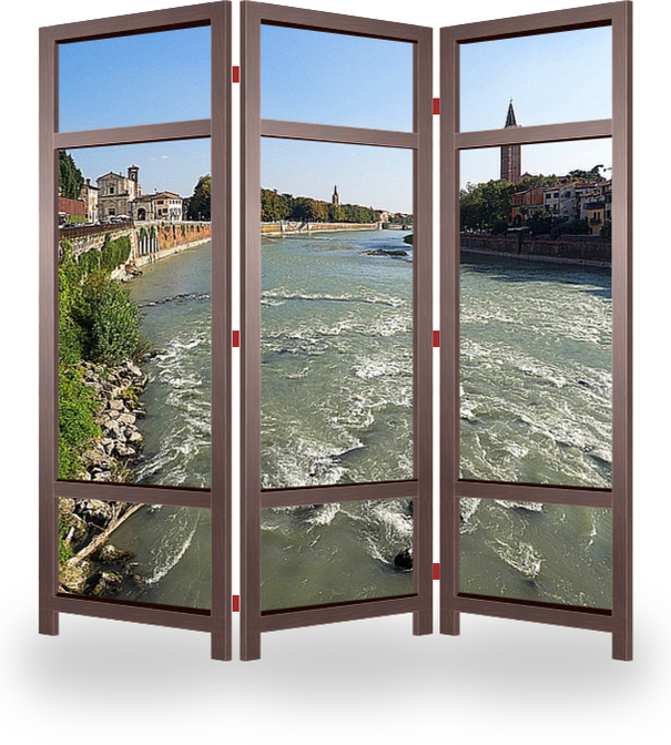 Описание ширмы Верона – город в области Венеция на севере Италии. Район старого города расположен на изгибе реки Адидже. Верона известна тем, что здесь происходили события трагедии У. Шекспира "Ромео и Джульетта".