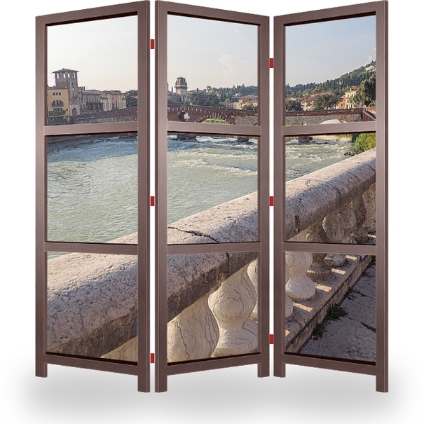 Описание ширмы Верона – город в области Венеция на севере Италии. Район старого города расположен на изгибе реки Адидже. Верона известна тем, что здесь происходили события трагедии У. Шекспира "Ромео и Джульетта".