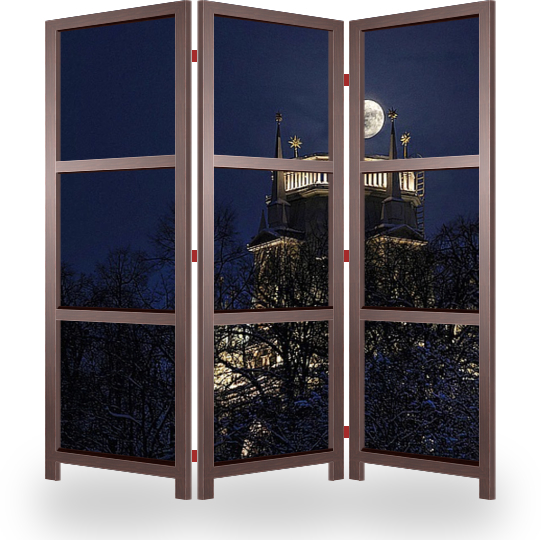 Ширма эконом отлично подойдет для временного размещения, рекламы, для отгораживания объектов интерьера и его дополнения. Лицевая сторона с изображением, обратная сторона открытый каркас