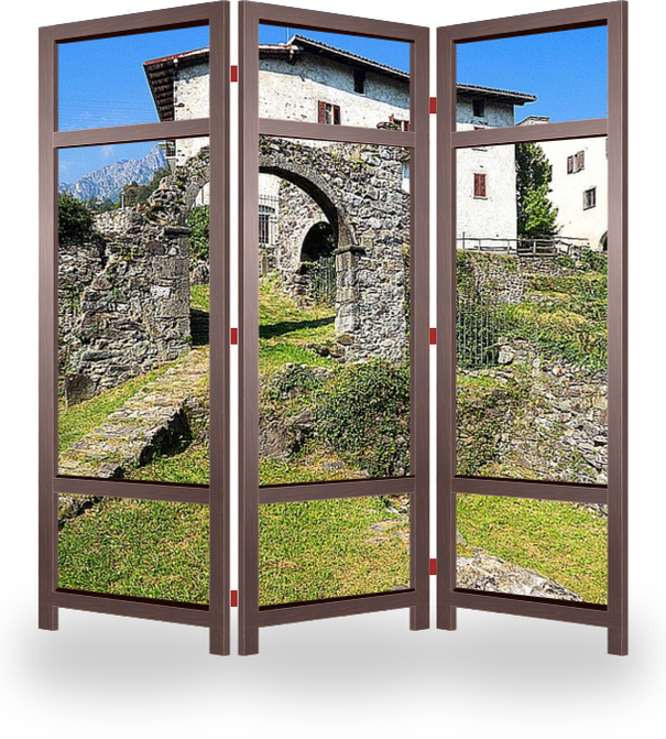 Описание ширмы Камерата Корнелло считается одним из самых красивых борго в Италии. Деревушка возвышается на скалистом обрыве на берегу реки Брембо.