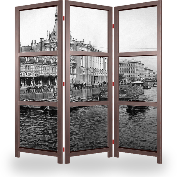 Ширма эконом отлично подойдет для временного размещения, рекламы, для отгораживания объектов интерьера и его дополнения. Лицевая сторона с изображением, обратная сторона открытый каркас