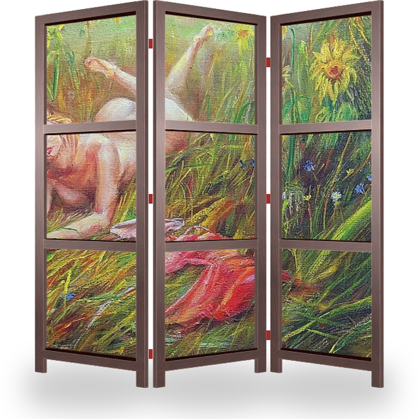 Описание ширмы Авторская картина ,выполненная мной в одном экземпляре .под впечатлением летней поездки на пленэр,на природу . Сюжет родился после нескольких этюдов ,которые меня и вдоновили на это полотно.