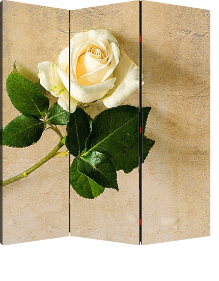 Описание ширмы Лаконичная композиция с царицей цветов-кремовой розой. Такой изящный постер может украсить любое помещение вашего дома, квартиры, отеля.
