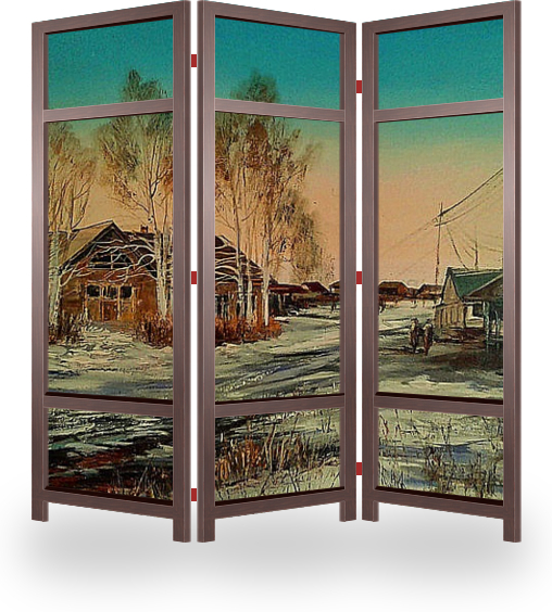 Описание ширмы село,пейзаж,лес,зимний пейзаж,импрессионизм,постер,купить постер,картина маслом,живопись,модульная картина,постер для интерьера,постер в офис,люди,человек,железная дорога,зима,снег,тает снег,осень,слякоть,домики,деревня,панно,Москва,Вологда,Салехард,