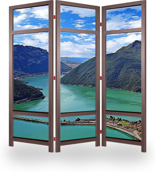 Описание ширмы Вид с горы Сан Сальваторе в Лугано, Швейцария. Озеро Тичино и окружающие его горы завораживают взгляд.