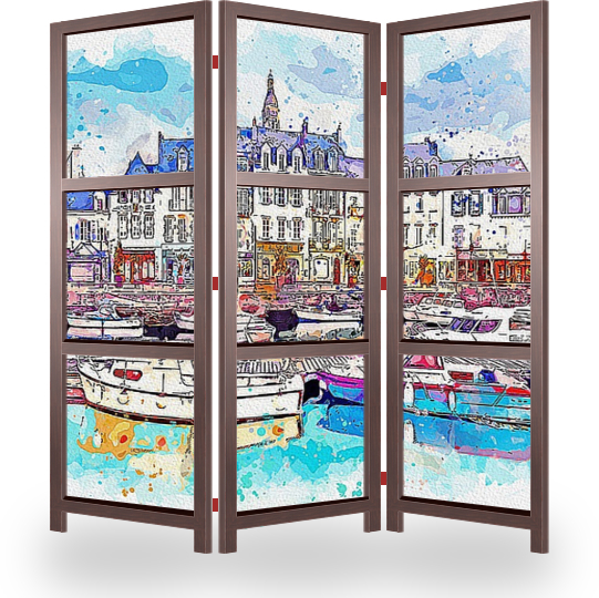 Описание ширмы Авторская работа из серии "Города, акварельный скетч". Город Ле Круазик (Le Croisic), France.