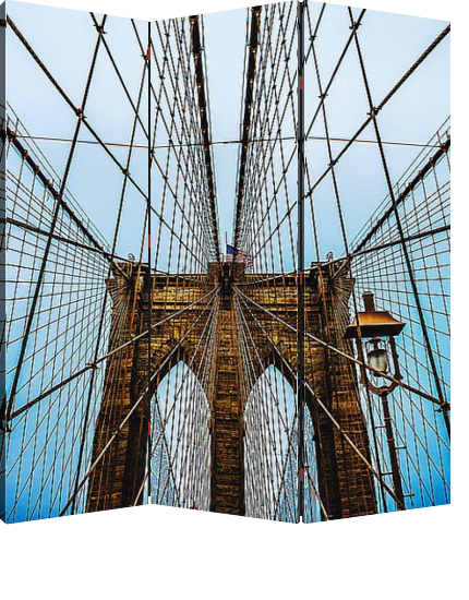 Описание ширмы Бруклинский мост ( Brooklyn Bridge) — один из старейших висячих мостов в США, его длина составляет 1825 метров, он пересекает пролив Ист-Ривер и соединяет Бруклин и Манхэттен в городе Нью-Йорке. На момент окончания строительства он являлся самым боль