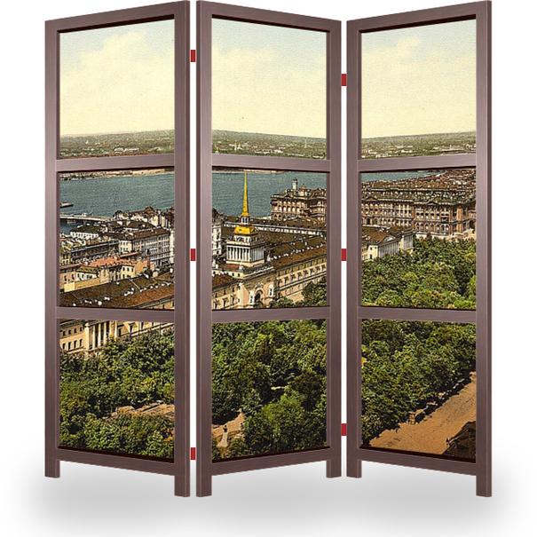 Ширма эконом отлично подойдет для временного размещения, рекламы, для отгораживания объектов интерьера и его дополнения. Лицевая сторона с изображением, обратная сторона открытый каркас