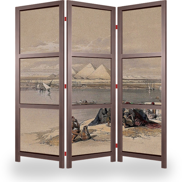 Ширма "Лодка на реке Нил, смотрящая на пирамиды в Саккаре и Дахшере, Египет"