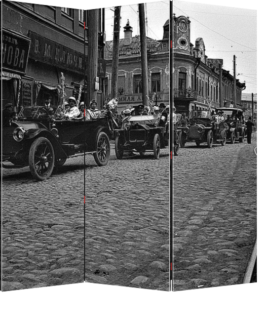 Ширма "Автопробег в честь акции «Белый цветок», посвящённой борьбе с чахоткой. 1914 год."