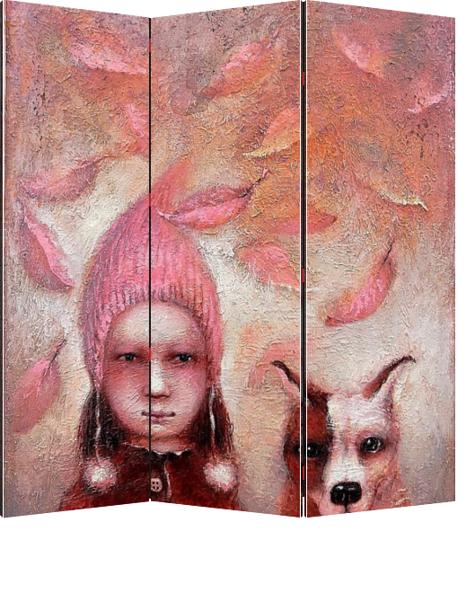 Описание ширмы Неслышно кружится листва.Как хорошо в такую погоду совершить прогулку с лучшим другом.