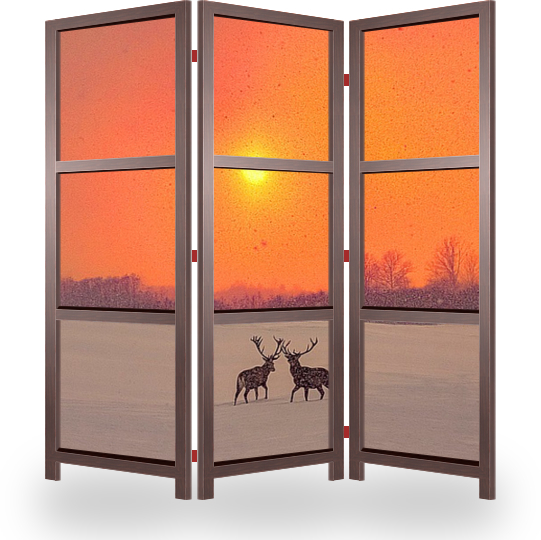 Описание ширмы Метель, Олени, Закат, Солнце Рога, поединок, животные, природа красивый пейзаж