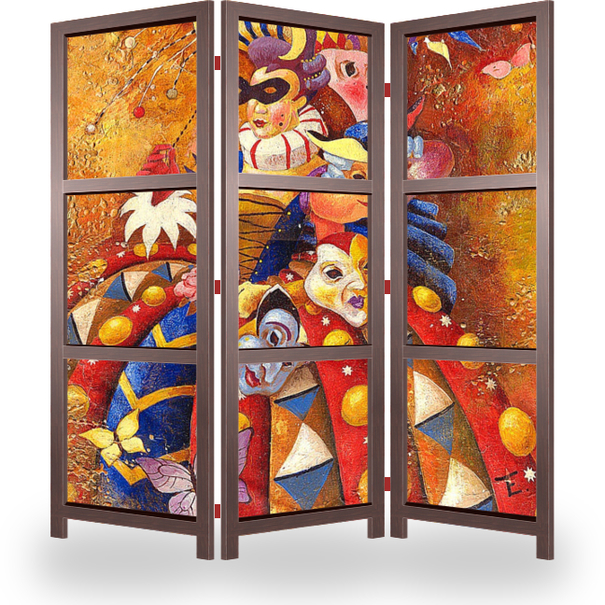 Описание ширмы Дама в карнавальном костюме 18 века и венецианские карнавальные маски. Фантазия о прошедших временах.