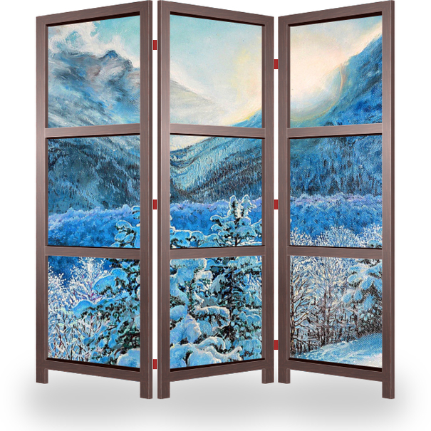 Описание ширмы Картина выполнена масляными красками на холсте. Умиротворяющий пейзаж с величественной зимней природой.