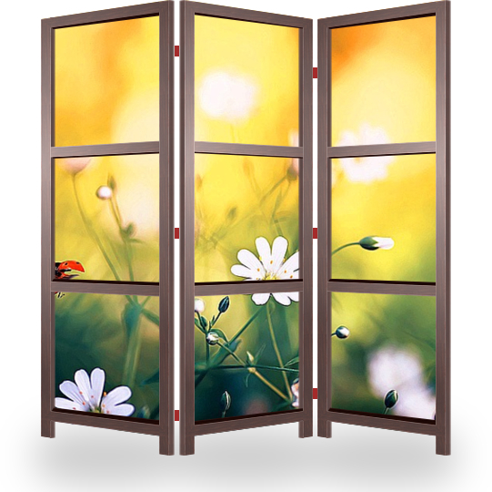 Ширма эконом отлично подойдет для временного размещения, рекламы, для отгораживания объектов интерьера и его дополнения. Лицевая сторона с изображением, обратная сторона открытый каркас