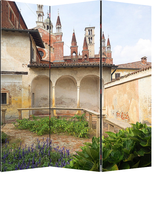 Описание ширмы Павийская Чертоза (Certosa di Pavia) — картезианский монастырь по дороге из Павии на Милан, в современной итальянской провинции Павия. Чертоза служит усыпальницей миланских герцогов Висконти и Сфорца и являет собой исключительный по степени сохраннос