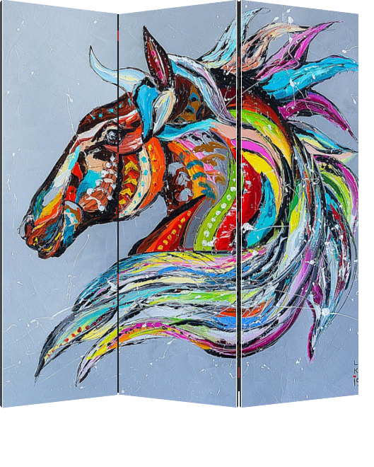 Описание ширмы Любовь Купцова - художник, работающий с различными материалами и техниками. Прежде всего это масло и акварель. Также занимается вышивкой, прижиганием по ткани, росписью стен.Самыми любимыми сюжетами являются животные, птицы, цветы и люди. Особое мест