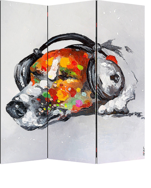 Описание ширмы Любовь Купцова - художник, работающий с различными материалами и техниками. Прежде всего это масло и акварель. Также занимается вышивкой, прижиганием по ткани, росписью стен.Самыми любимыми сюжетами являются животные, птицы, цветы и люди. Особое мест
