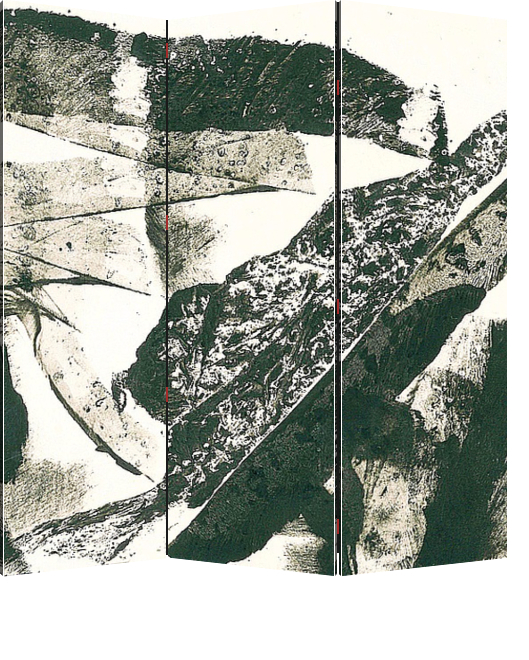 Описание ширмы абстрактный чёрно белый пейзаж для украшения вашего интерьера. Современные ритмы и сложные фактуры листа позволяют увидеть в изображении многообразиие форм.