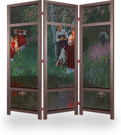Описание ширмы День Рождества Св. Иоанна Предтечи отмечался 24 июня (в ночь с 6 на 7 июля по новому стилю). До сих пор он является одним из самых значительных, ярких праздников всего христианского мира. Праздник приходится на день летнего солнцестояния, в народе он