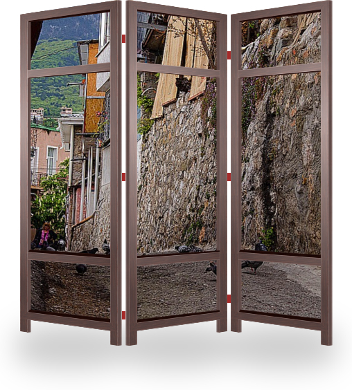 Описание ширмы Приятная прогулка по узким колоритным улочкам Гурзуфа. Такой постер может украсить любое помещение вашего дома, квартиры, отеля, офиса, турфирмы.