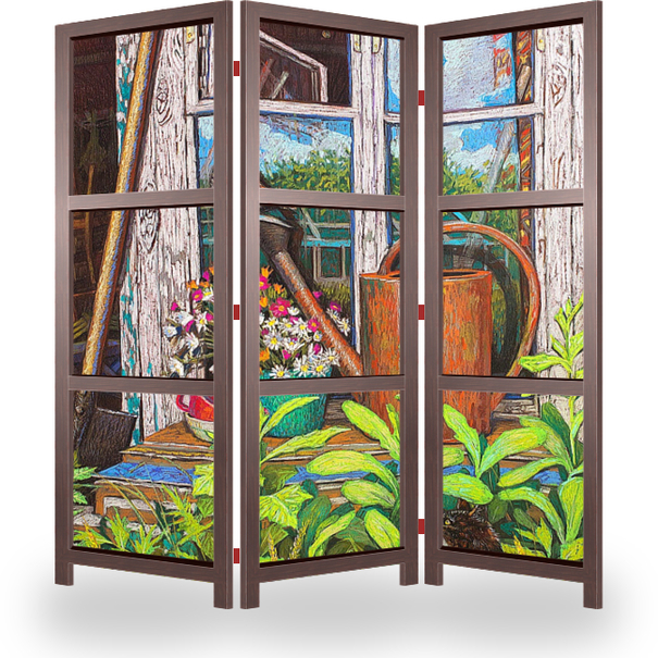 Описание ширмы Пастельная работа с уютным сюжетом станет прекрасным и интересным украшением интерьера гостиной, спальни или кухни.