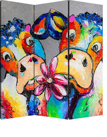 Описание ширмы Любовь Купцова - художник, работающий с различными материалами и техниками. Прежде всего это масло и акварель. Также занимается вышивкой, прижиганием по ткани, росписью стен.Самыми любимыми сюжетами являются животные, птицы, цветы и люди. Особое мест