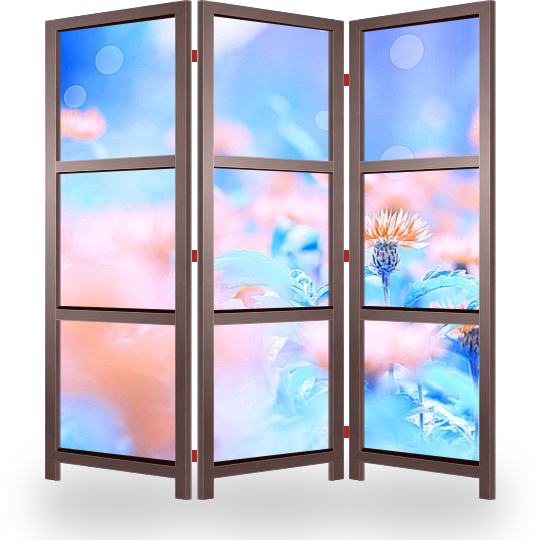 Ширма эконом отлично подойдет для временного размещения, рекламы, для отгораживания объектов интерьера и его дополнения. Лицевая сторона с изображением, обратная сторона открытый каркас