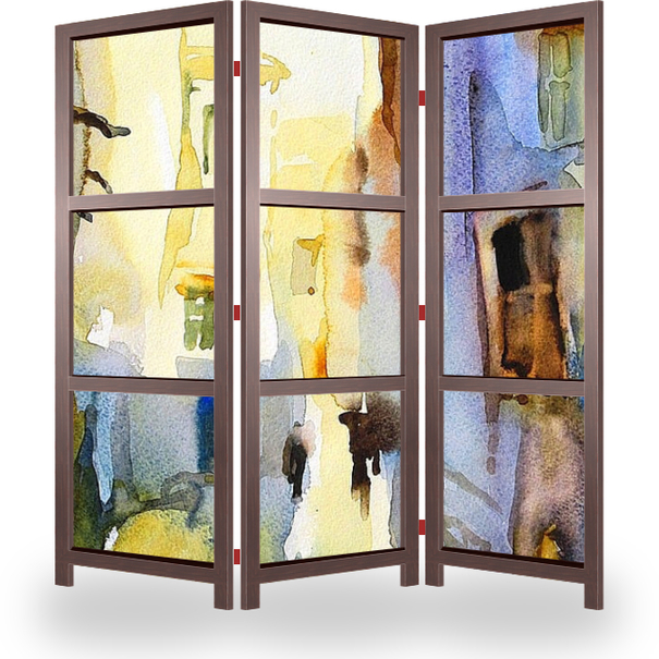 Описание ширмы Акварельный пейзаж---раннее утро восточного города в голубой дымке, где сливаются очертания и силуэты домов с мягкими прозрачными тенями, которые вот-вот растают под жаркими лучами восходящего солнца...но пока еще прохладно...