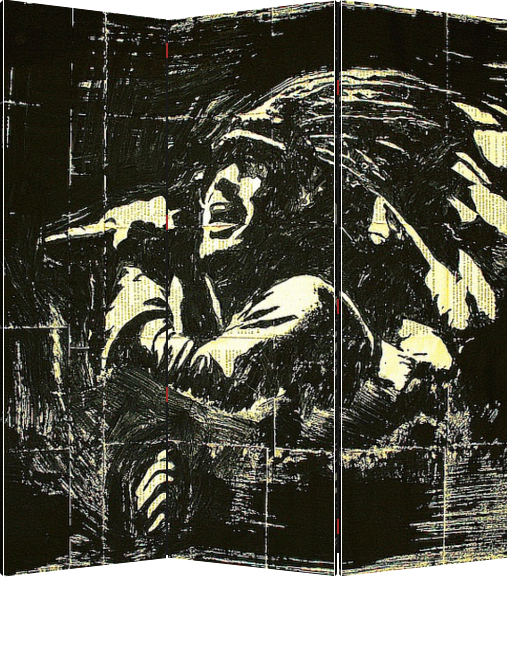 Описание ширмы Mixed-media painting by Marat Cherny. Original art..gouache,ink,watercolor glued on together vintage book pages.