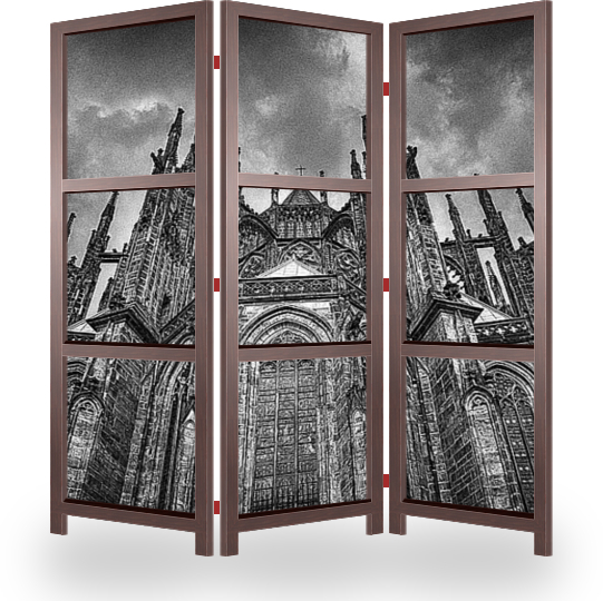 Ширма эконом отлично подойдет для временного размещения, рекламы, для отгораживания объектов интерьера и его дополнения. Лицевая сторона с изображением, обратная сторона открытый каркас