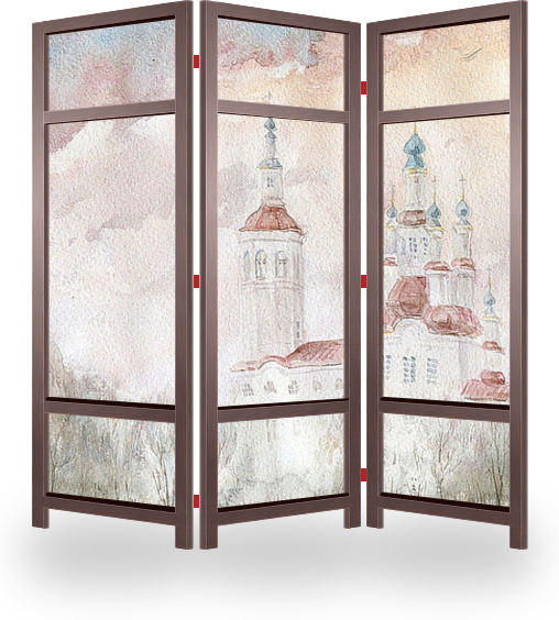 Описание ширмы Город Тотьма в Вологодской области очень живописен. Потрясающая природа и ладншафты привлекают художников со всего мира,и одна из главных жемчужин города,это церковь Входа в Иерусалим