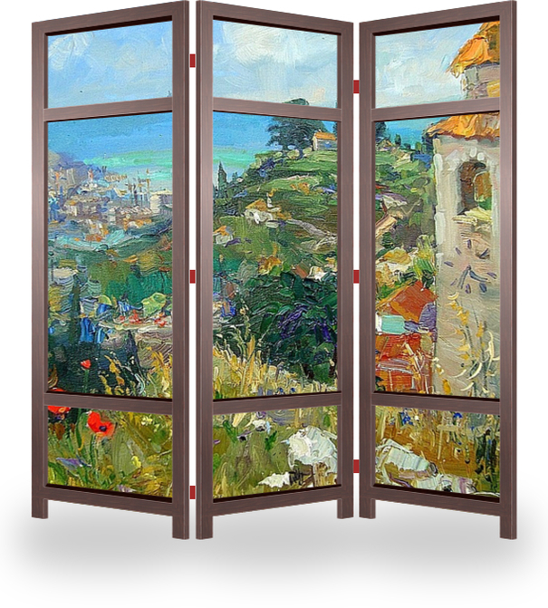 Описание ширмы Работа написана на пленэре в городе Старый Бар, высоко в горах, в развалинах старой , живописной крепости