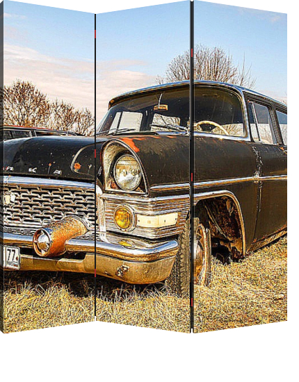 Описание ширмы фотография сделана в Авто музее Черноусово. Более 300 автомобилей советской эпохи стоят под открытым небом.